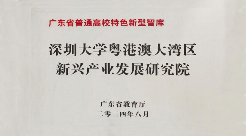 2025年7月25日,中國社會科學評價研究院公示了中國智庫綜合評價研究項目(2025)AMI智庫入庫名單,深圳大學粵港澳大灣區新興產業發展